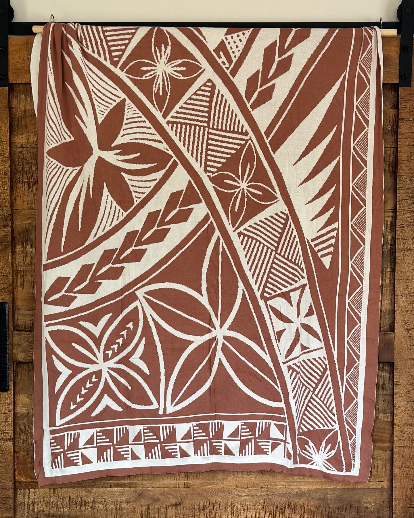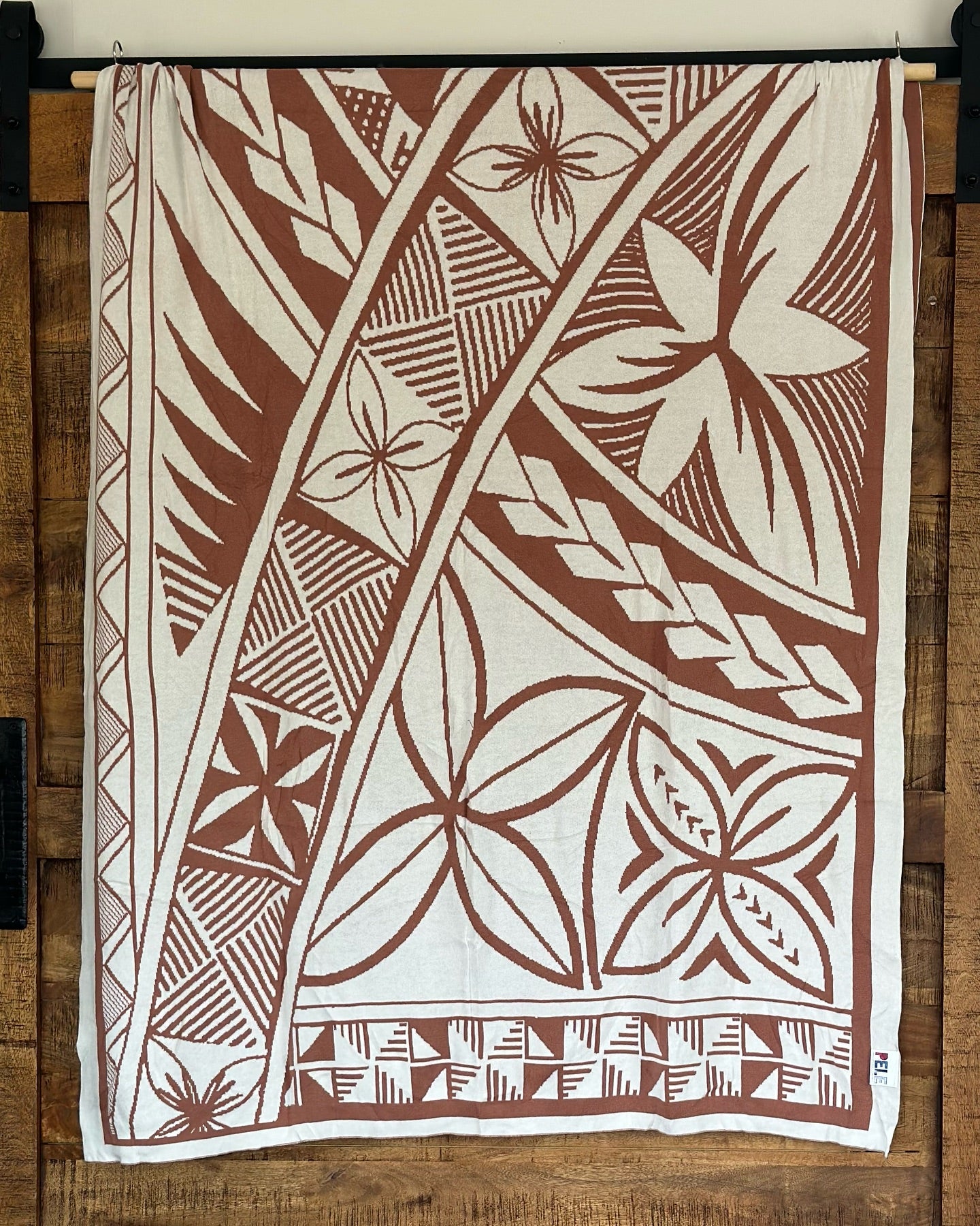 Le tricot Amataga est conçu pour être polyvalent, parfait comme jeté de canapé ou de lit, ou même comme couverture de pique-nique inspiré du Pacifique : les possibilités sont infinies !